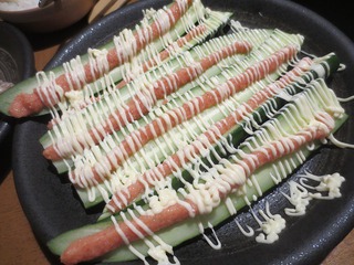 きゅうりの明太子マヨネーズ&じゃがバターin塩辛を前菜にいただき